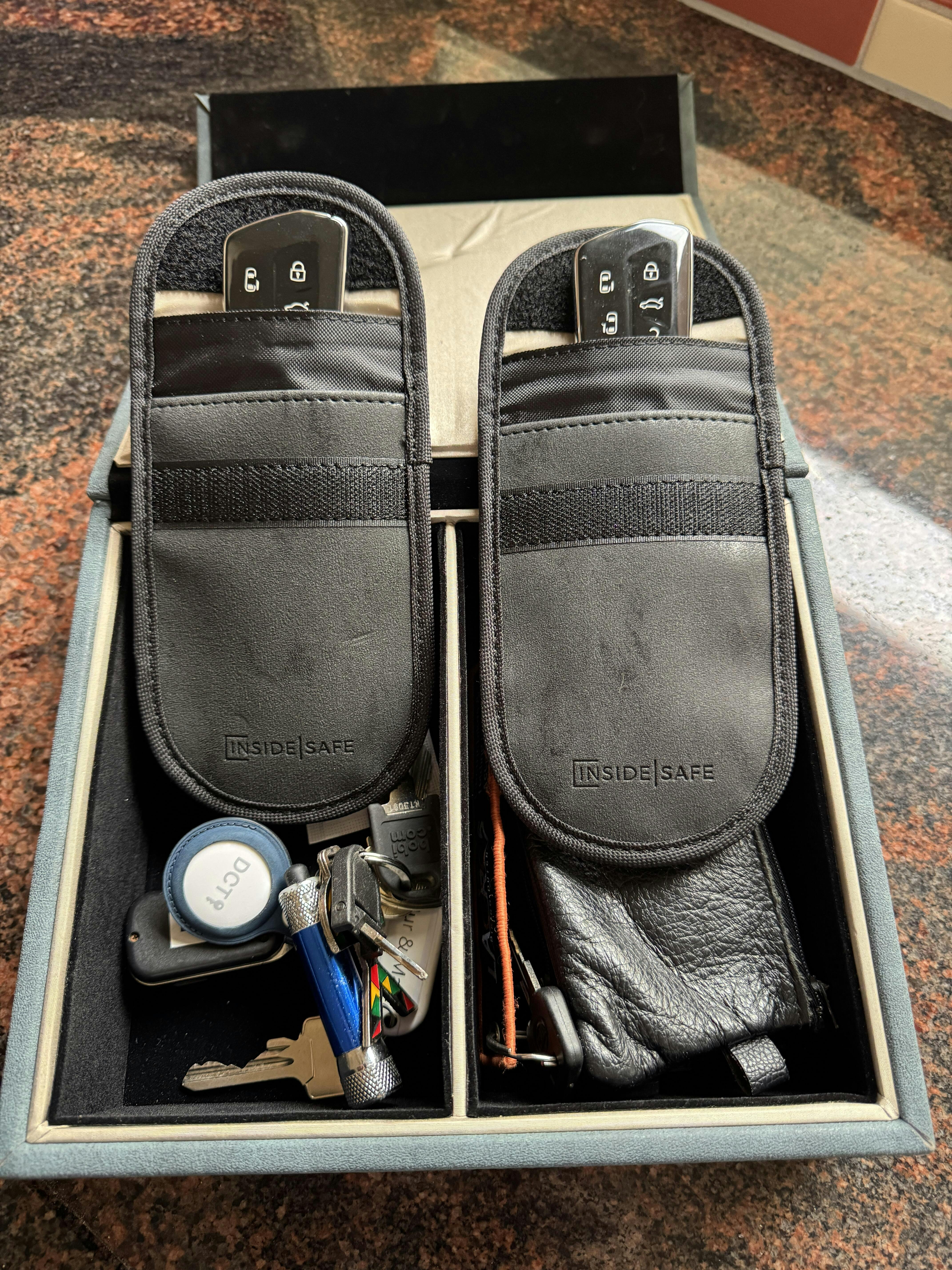 Inside Safe geeft Keyless Entry autodieven geen enkele kans. Onze stijlvolle Faraday box met RFID beschermhoes blokkeert signalen met een betrouwbaar ontwerp en maakt Keyless Entry & Keyless Go hacking onmogelijk. Met uw autosleutels in de Faraday box maken autodieven geen schijn van kans, vaarwel slapeloze nachten!